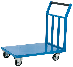 Carrello a pianale. Provvisto di 2 ruote con staffe girevoli e 2 ruote fisse. Portata 300 kg. Disponibile in 3 misure: